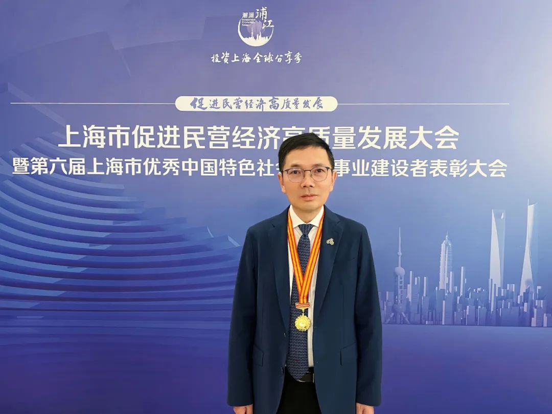 2023年5月24日下午,上海市促进民营经济高质量发展大会暨第六届上海市优秀中国特色社会主义事业建设者表彰大会在上海展览中心召开。市委书记陈吉宁,全国政协副主席、全国工商联主席高云龙,市委副书记、市长龚正,市委常委、常务副市长吴清,市委常委、统战部部长陈通等领导出席会议。