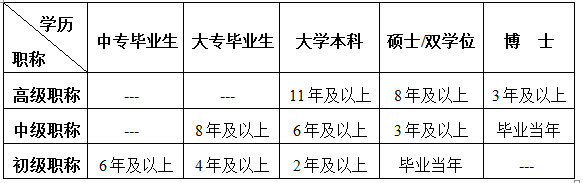 企业技术负责人和财务负责人职称可以按下表的年限作视同处理。其中技术负责人年限是指从事系统集成技术工作经历的年数,财务负责人年限是指从事财务管理工作经历的年数。